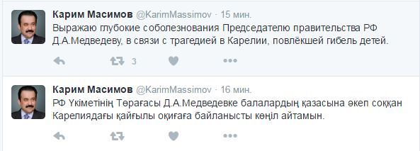 «Выражаю глубокие соболезнования Председателю правительства РФ Д.А. Медведеву в связи с трагедией в Карелии, повлекшей гибель детей», - написал он в своем твиттере.