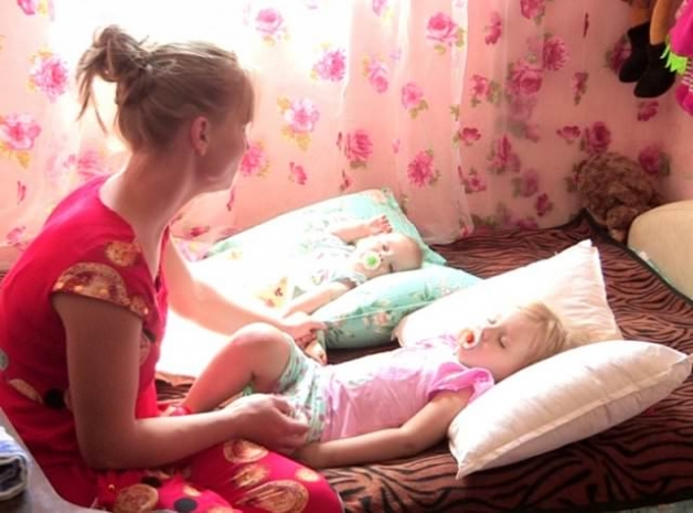 Маленькая комнатка, в которой ютится Марина вместе с детьми, обставлена без изысков. Вся мебель принадлежит хозяйке дома. Пока дети спят, Марина работает - стирает белье за деньги. Заработанные средства уходят на покупку лекарств.