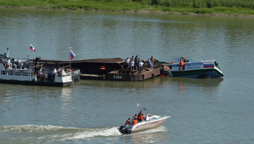 В минувшую субботу днем в 10-ти км от Омска столкнулись теплоход «Полесье-8», на борту которого находились 56 человек, и баржа.