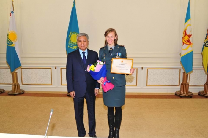 Министр обороны Республики Казахстан Имангали Тасмагамбетов поздравил военнослужащую, капитана Центрального спортивного клуба армии Министерства обороны РК, олимпийскую чемпионку Ольгу Рыпакову с бронзовой медалью в тройном прыжке на Олимпиаде в Рио-де-Жанейро, сообщает пресс-служба ведомства.