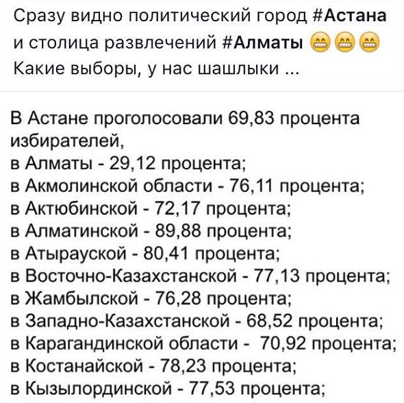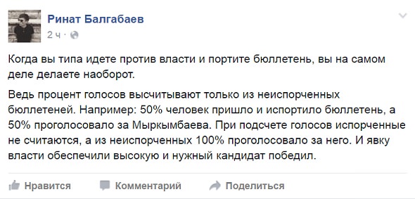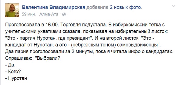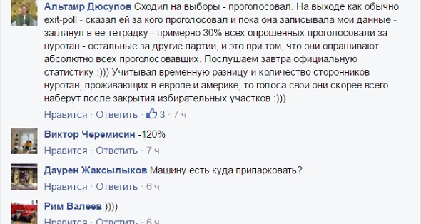В социальной сети Facebook казахстанцы делятся своими мнениями о выборах.
