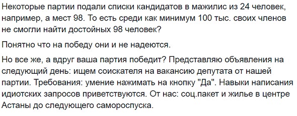 Кроме того, нашлись и те, кто не поверил в «прозрачность» выборов мажилиса парламента РК.