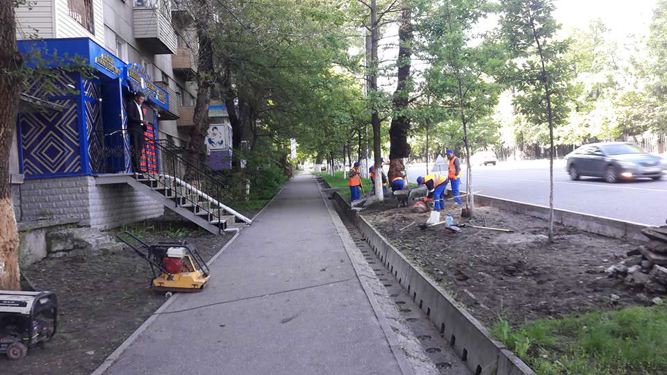 Пользователь Duke De Babkov в социальной сети Facebook опубликовал запись о том, что на пересечении улиц Достык Чайкиной рабочие ломают арыки и рубят деревья для парковки.