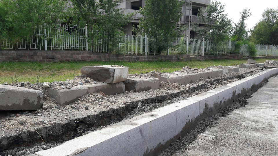 «В районе трамплинов вдоль дороги меняют бордюры. Такая же ситуация на Толе би - Мате Залки. Я вышла из машины специально, чтобы исследовать этот вопрос: в силу какой такой необходимости осуществляется эта замена? На трамплинах больше 10 дней, на Толе би уже неделю. Люди, техника, работа кипит.