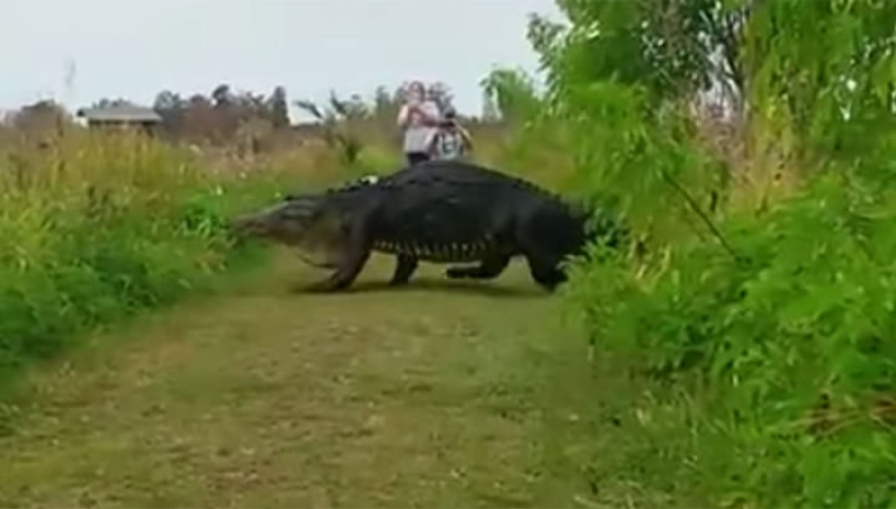 Необычный аллигатор-гигант замечен в США. ВИДЕО