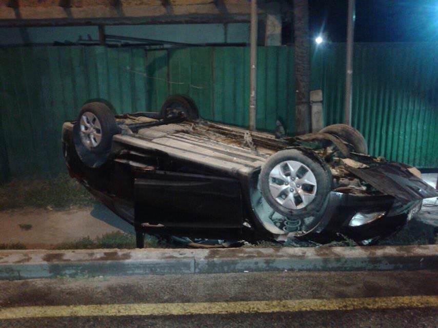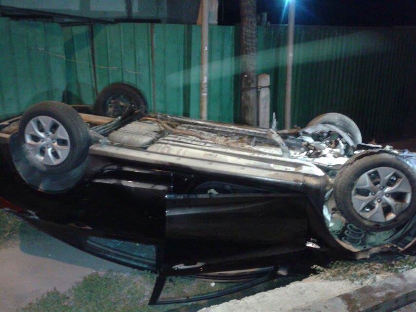 По неизвестным причинам водитель автомобиля Hyundai Accent не справился с управлением, машина «наскочила» на бордюр и перевернулась. Во время переворота машина повредила забор частного жилого дома. Владельцы жилья вышли на грохот, вызвали медиков и полицейских, достали мужчину из автомобиля и оказали ему первую медицинскую помощь.