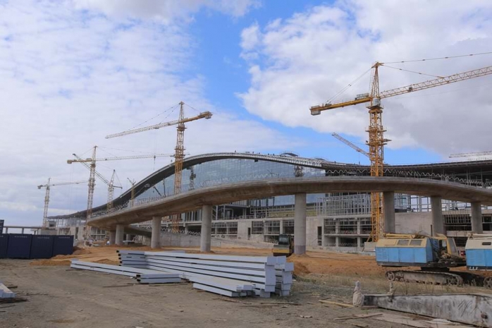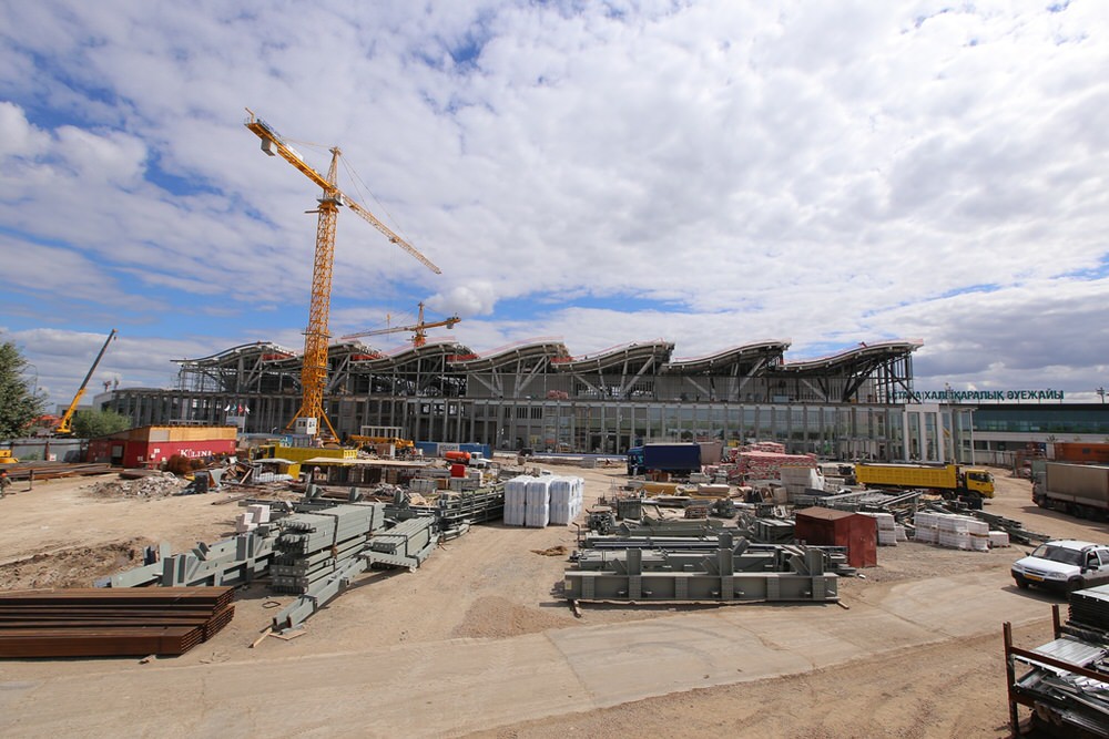 В настоящее время возведен каркас нового терминала аэропорта, выполняются работы по устройству кровли, фасада, внутренней отделки здания, монтажу инженерных коммуникаций. Строится новый перрон для стоянки воздушных судов. В ходе рабочего совещания на строительной площадке аэропорта, в котором приняли участие работники АО «Международный аэропорт Астана» и генеральной подрядной организации, было отмечено, что работы выполняются в установленные сроки, в соответствии с графиком.