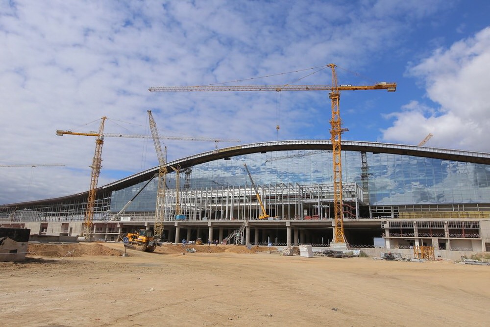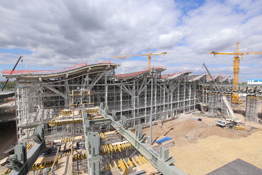 Смонтировано около 30 тыс. тонн металлоконструкций. Выполняются монтажные работы по установке стеклянной навесной фасадной системы и кровли, инженерных коммуникаций, монтаж эскалаторов и лифтов. Пропускная способность нового железнодорожного вокзала составит более 35 тыс. пассажиров в сутки. Завершить его строительство планируется в апреле 2017 года.