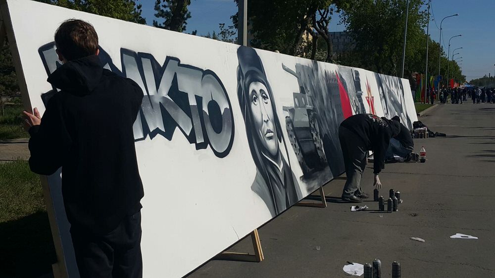 Отметим, что на создание этой военно-патриотической композиции у ребят ушло 60 банок краски 10 цветов.