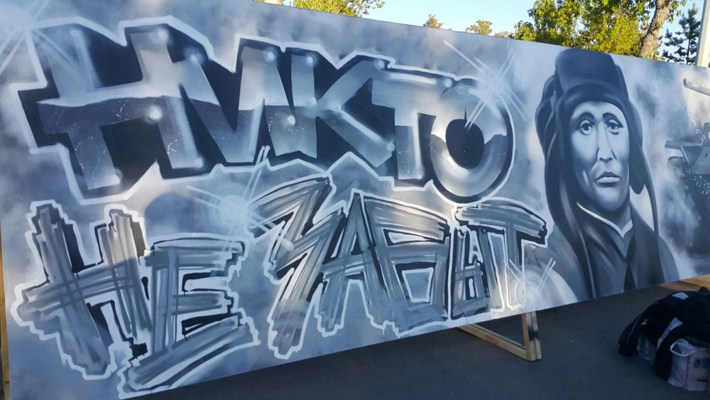 Образы Алии Молдагуловой и Рахимжана Кошкарбаева воспроизвели павлодарские граффисты