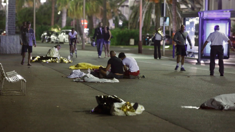 Водитель грузовика выехал на Promenade d'Anglais, снеся ограждение, и врезался в толпу. Он зигзагами проехал два километра, потом начал стрелять в людей. Затем его обезвредили жандармы. В грузовике нашли оружие и гранаты.