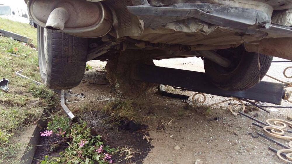 Водитель автомашины потерял управление, в результате чего его занесло на разделительное ограждение между полосами.