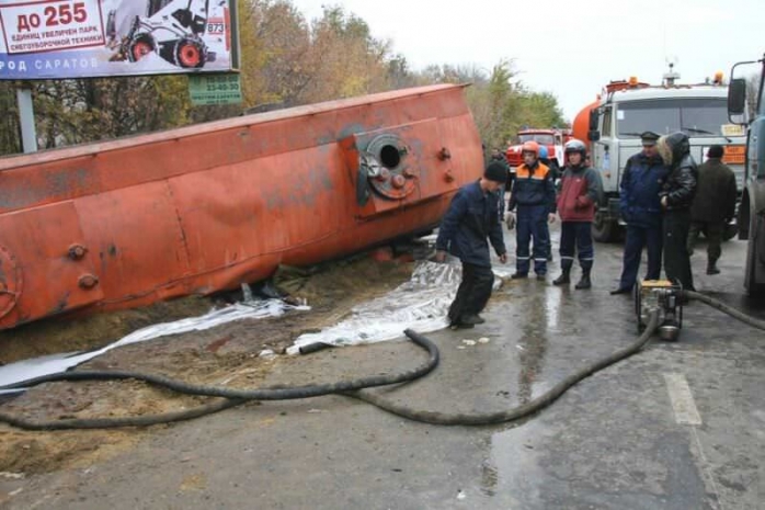 В результате ЧП на дорогу вылилось около тоны серной кислоты на площади 59 кв. метров.