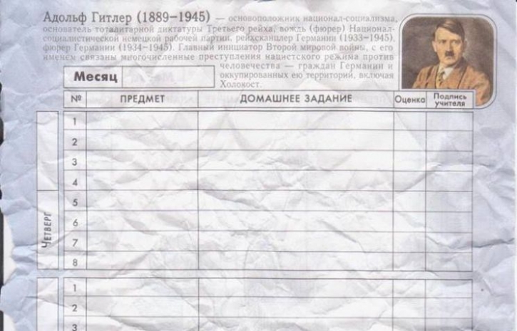 Ранее в Екатеринбурге были обнаружены школьные дневники, на страницах которых напечатан портрет Гитлера