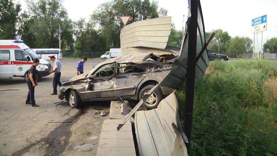 Двигаясь по Раимбека, напротив ТЦ «Арзан» водитель Мерседеса не справился с управлением, в результате чего автомашина влетела в забор.