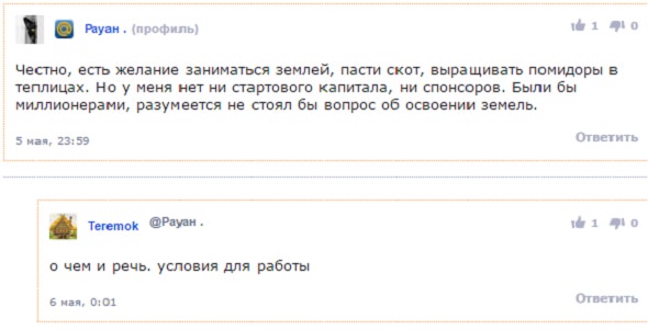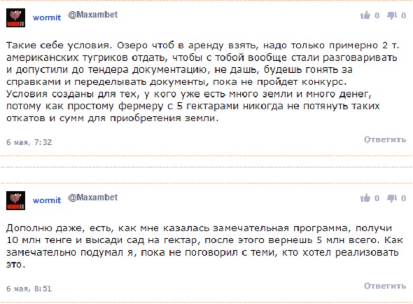 Как стало известно из комментариев, казахстанцам для работы на земле нужны только спонсоры и деньги.