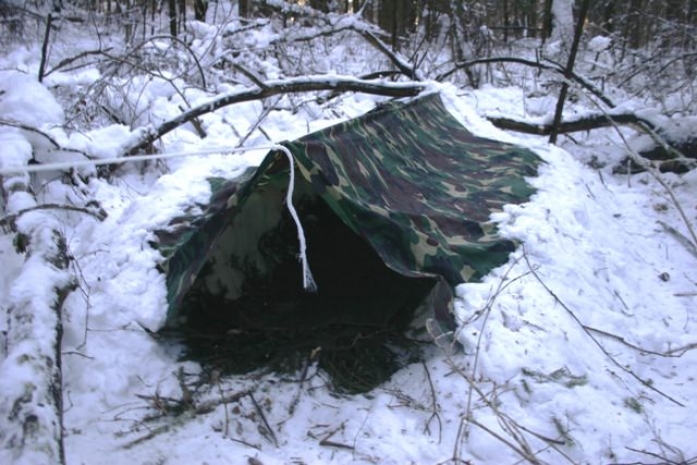 Сооружения были построены в ходе тренировки в зимнем лесу