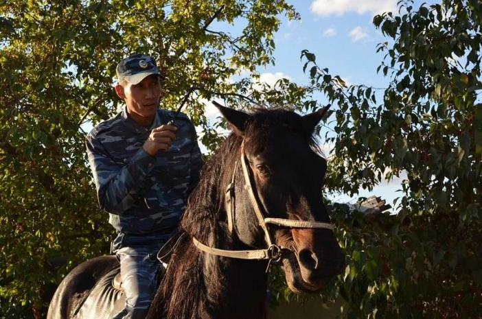 Еркебулан рассказывает, что в этой работе самое главное – умение установить контакт с четвероногим союзником. Наш собеседник заступает на маршрут с напарниками – конями Ракетой и Каскадом, которые стали для него настоящими друзьями. «Лошадь – чувствительное животное, если человек боится лошади, то она не подпустит. А если не бояться, постоянно ее гладить, ухаживать за ней, будет все отлично, контакт будет. Я люблю лошадей, мне очень нравится с ними находиться», – рассказывает полицейский.