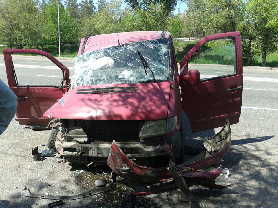Автомобиль Mercedes Vito двигался в восточном направлении по улице Бекмаханова. Со слов водителя транспорта, в один момент у него лопнуло колесо и машину откинуло в идущий рядом Mitsubishi. После первого удара немецкую иномарку ударил небольшой грузовик. В результате столкновения пострадал водитель Mercedes. После оказания первой помощи медиков он отказался от госпитализации. Машина восстановлению не подлежит.