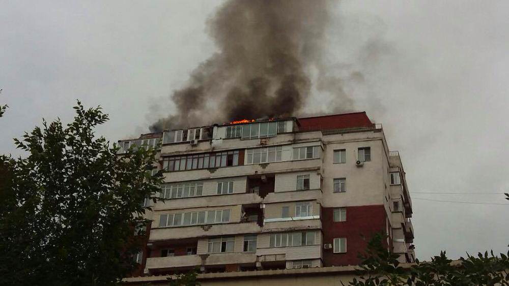 В 12:20 на пульт «101» ДЧС Алматы поступило сообщение от очевидца о возгорании кровли высотного жилого дома по адресу: Бостандыкский район, ул. Щепкина, 32.