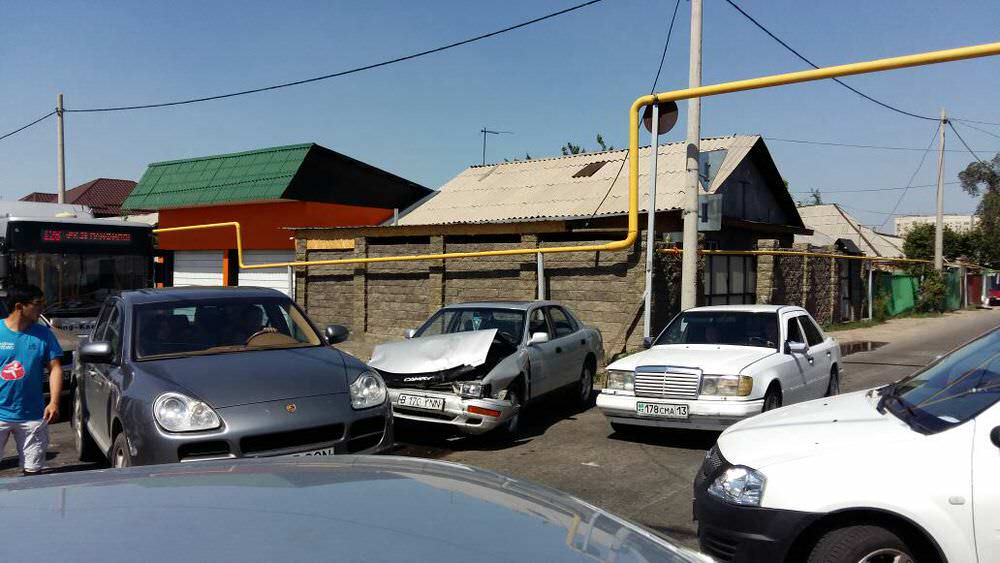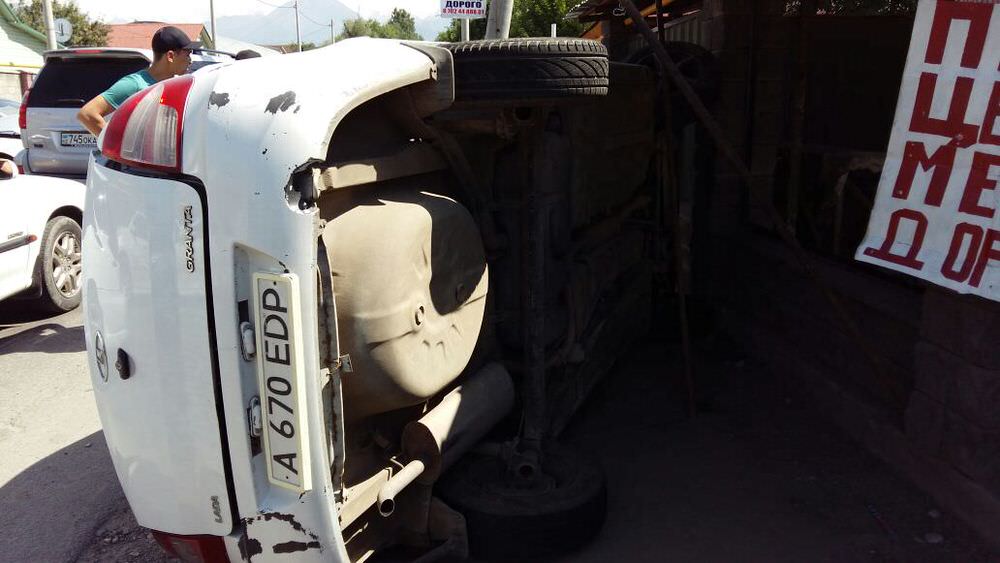 Автомобиль Toyota Camry двигался по улице Яссауи в северном направлении. В этот момент на перекресток, проигнорировав запрещающий знак, выскочила Lada Granta. В результате столкновения Camry развернуло, а Priora перевернулась и врезалась в забор частного дома.