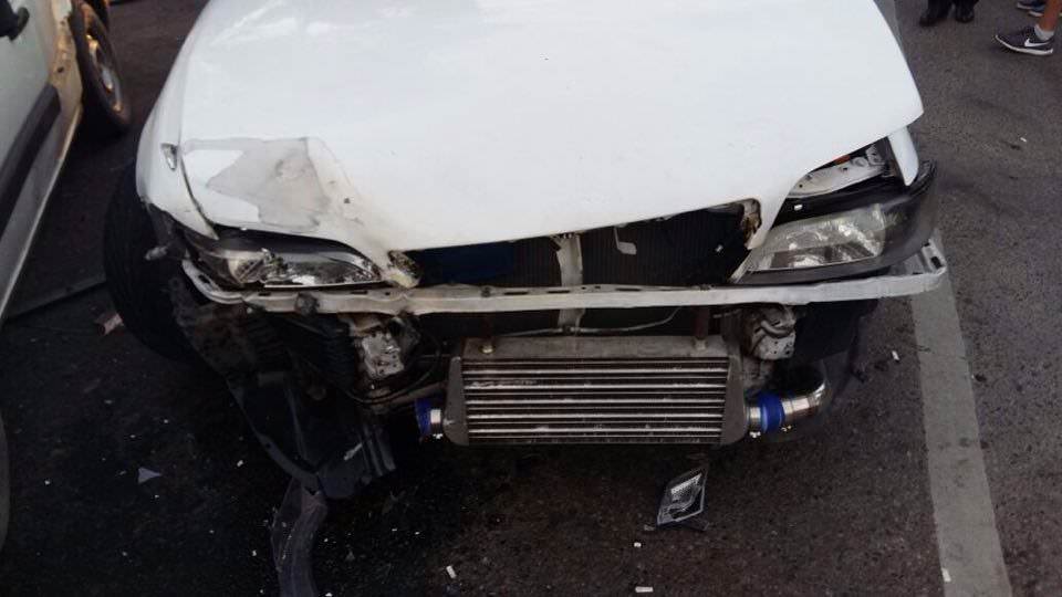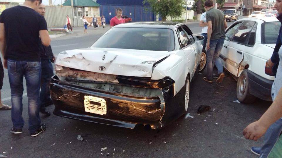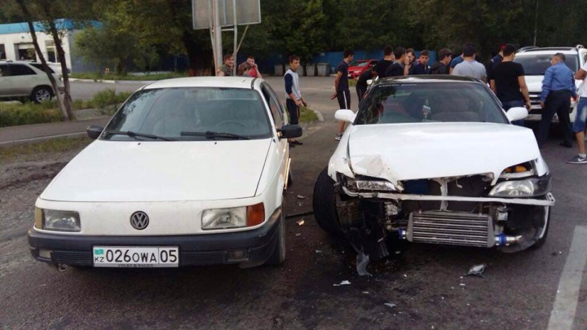 На пересечении улиц Бекмаханова и Суюнбая столкнулись три автомобиля. Молодой человек на спортивной Toyota не справился с управлением и на большой скорости выскочил на встречную полосу, где столкнулся с ожидающим разрешающего сигнала светофора автомобилем Volkswagen, который от удара отлетел на стоящий рядом «Мерседес».