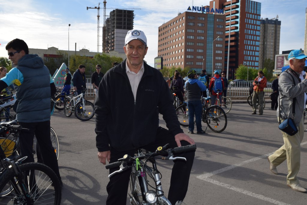 Известный советский баскетболист, генеральный менеджер казахстанского баскетбольного клуба «Астана» Валерий Тихоненко пришел поддержать участников велопробега.