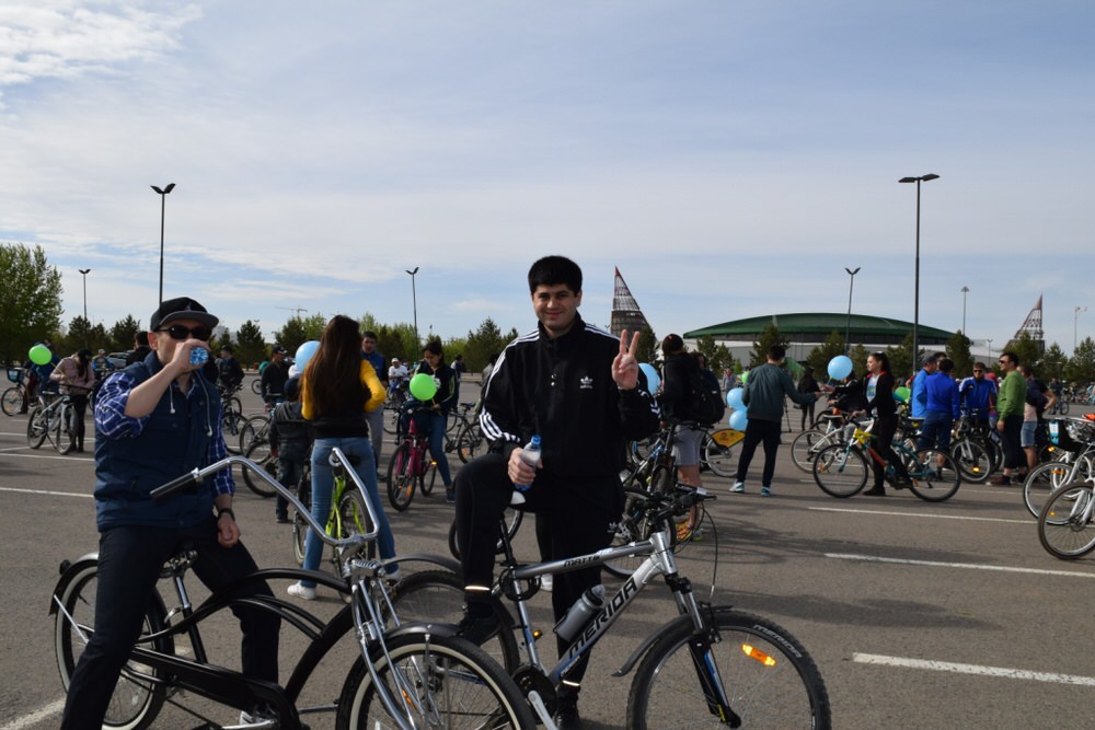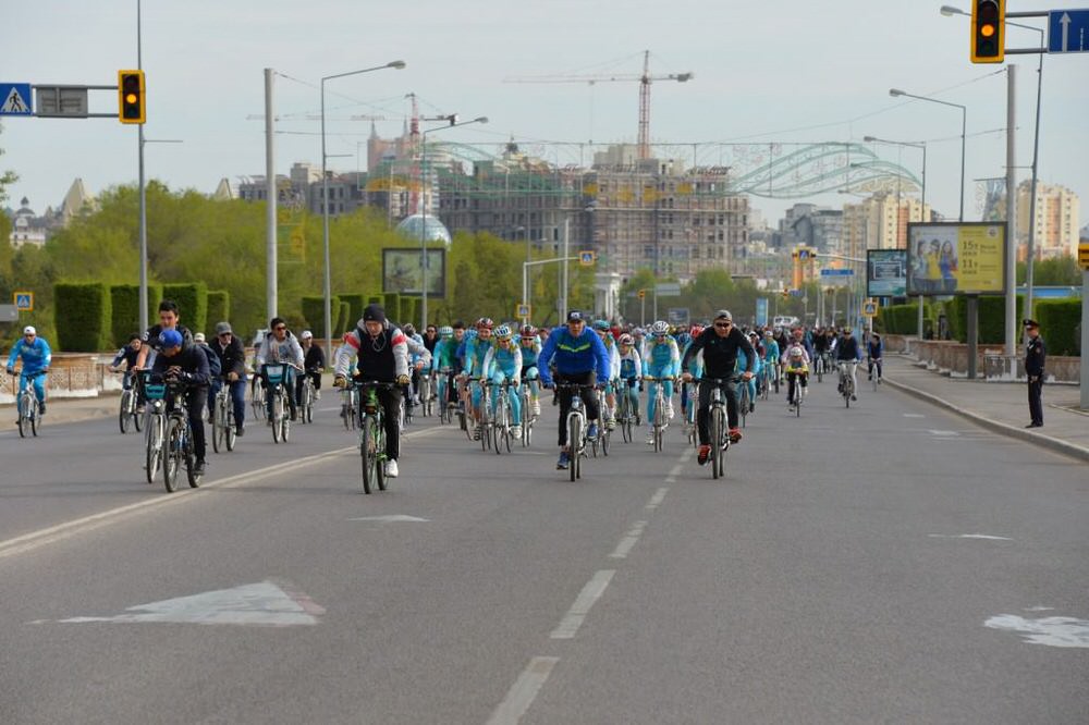 С раннего утра на площадь перед домом приемов «Салтанат Сарайы»«съезжались» любители велосипедных прогулок. Профессиональные спортсмены уже ожидали их на старте.