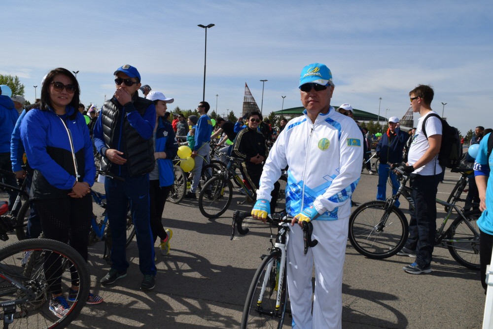 На старте был замечен лишь министр культуры и спорта АрыстанбекМухамедиұлы. На финише он поздравил всех участников велопробега с наступающим Днем Победы.