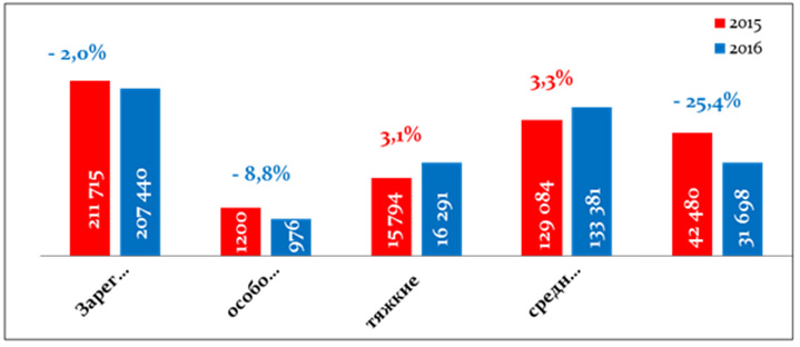 Рост наблюдается лишь в категории «Кражи» (110 691 против 103 150).