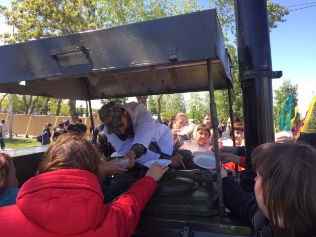 «Мы сегодня готовим тысячу килограммов каши. Людям очень нравиться. Сейчас уже первую партию приготовили, а еще вечером будем угощать всех на набережной Иртыша. Для этого у нас ушло 100 кг. гречневой крупы, 230 банок тушенки или 75 кг. мяса, 25 кг. моркови, 20 кг. лука и 12 литров масла. Думаю, всем должно хватить, и всем понравиться», - отметил заместитель командира по воспитательной работе войсковой части 5512 Национальной гвардии, майор Денис Ча.