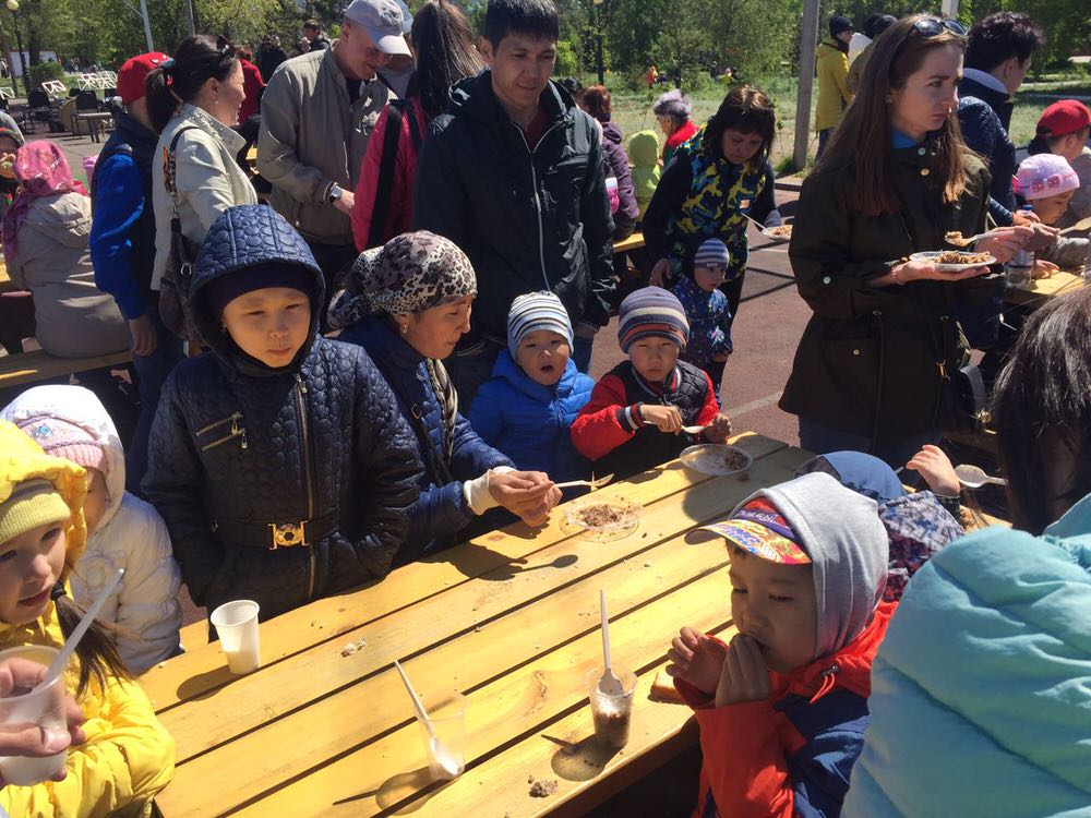 «День Победы – самый важный праздник, который очень близок для всех казахстанцев, потому, что затронуло каждого человека, каждую семью, и это наш долг приходить сюда на 9 мая, чтобы вместе со всеми вспомнить наших Героев, и вместе со всем народом отметить Победу! Мы очень благодарны молодым военным, что они ставят палатки, разворачивают полевые кухни и готовят такую вкусную солдатскую кашу, придавая этому празднику особую атмосферу. И эта каша самая лучшая, которую я когда-либо ела», - отметила жительница города Любовь Лаврентьева.