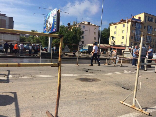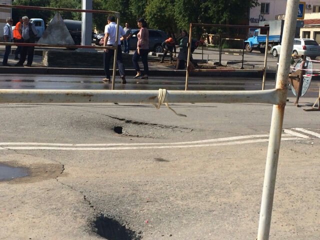 Между тем ремонтные службы сейчас продолжают устранять повреждения дорожного полотна. Асфальт провалился на нескольких улицах. Из-за этого на перекрестке ул. Толстого и Исы Байзакова напротив ресторана «Марсель» в яму провалилась карета скорой помощи, но бригада не пострадала.