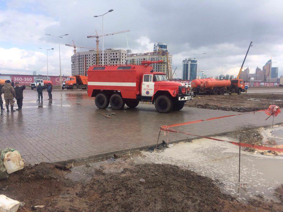 «6 апреля 2016 года в 10:45 утра поступило сообщение о поступлении воды на улицу Сыганак. По прибытии на место вызова стало известно, что в результате проведения земляных работ строительной компанией «AstanaVipProject» и нарушения обвалования озера Малый Талдыколь допущено попадание воды в кабельные лотки, и, как следствие, произошел перелив через дорожное полотно улицы Сыганак», - сообщил Иманкулов.