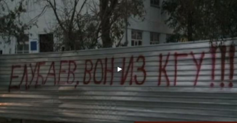 Педагоги пробираются по ночам в университет, чтобы написать на стене нехорошие слова. Надпись «Елюбаев уходи» даже никто не стирает. Выступить открыто против руководителя могут лишь единицы. Профессор Тошанов говорит, из альма-матер уволился по собственному желанию, но из-за нового ректора.