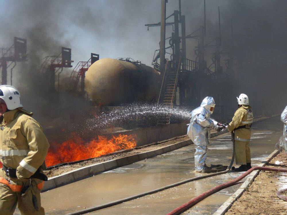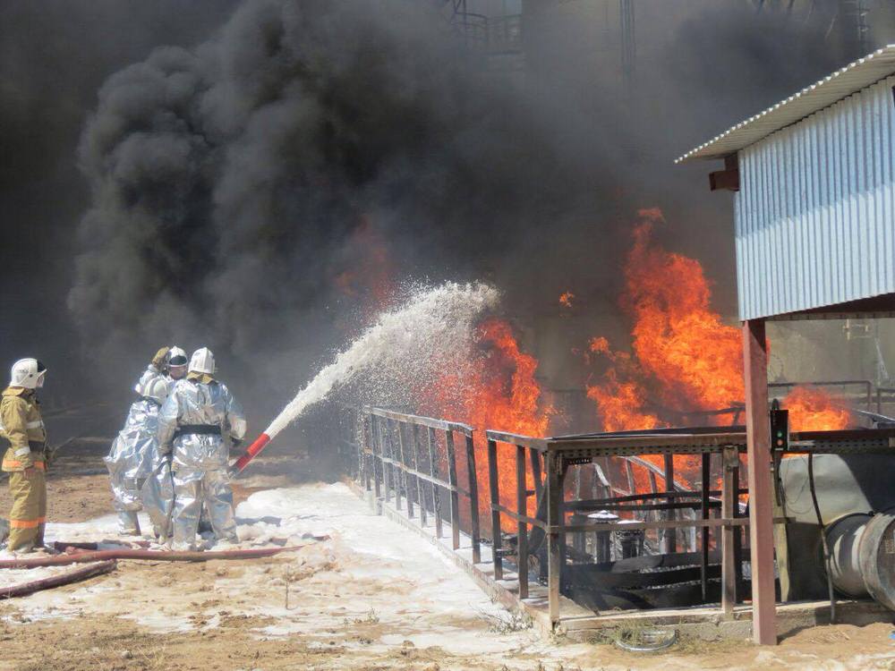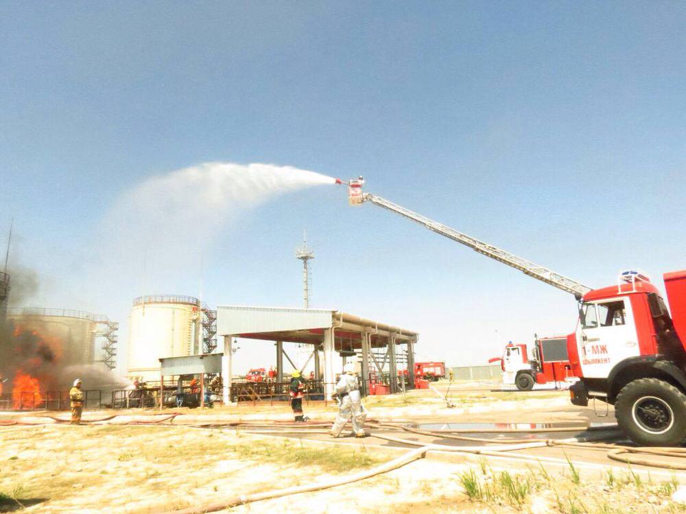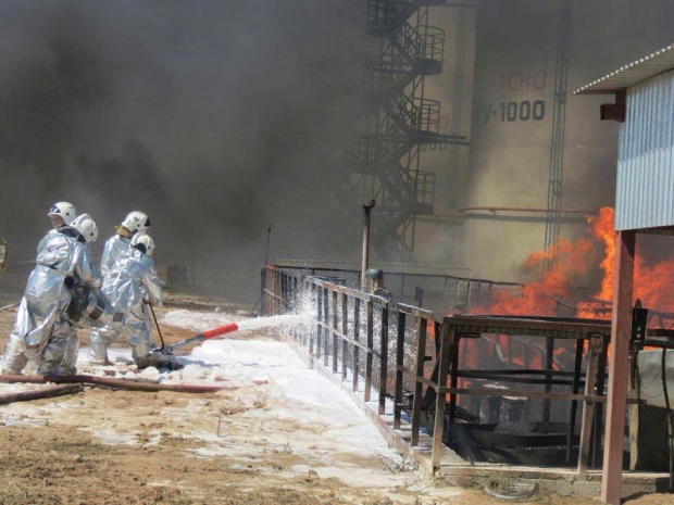 «Пожарные проводят пенную атаку для тушения пожара на нефтебазе. Она производится одновременно всеми расчетными средствами. Подготовка к пенной атаке проводится в максимально короткий промежуток времени, так как горение и выделяемая температура оказывает значительное влияние на тушение пожара пеной. Кроме того, увеличение времени горения повышает опасность распространения пожара на соседние резервуары, а также опасность вскипания и выброса нефти и других темных нефтепродуктов», - рассказал подробности Руслан Иманкулов.