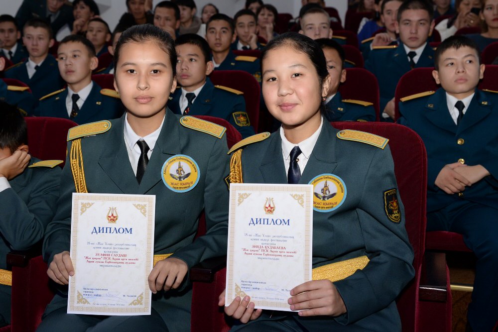 Дипломами участников XVIII Республиканского фестиваля армейской песни «Жас Улан-2016» наградили юных представителей талантливой молодежи со всей республики, учеников общеобразовательных школ, лицеев, студентов колледжей, молодых патриотов.