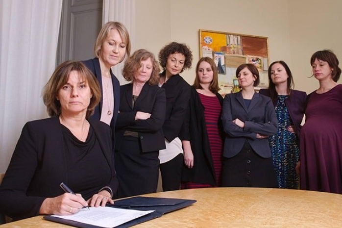 Вице-премьер и глава шведского Министерства по вопросам защиты окружающей среды Изабелла Лёвин опубликовала в Facebook фотографию, сделанную в момент подписания закона о сокращении выбросов парниковых газов в стране. На снимке она находится в окружении семи коллег из правительства.