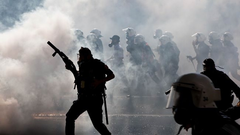 Собравшиеся на площади люди нарушили запрет на проведение демонстраций по случаю Дня труда.