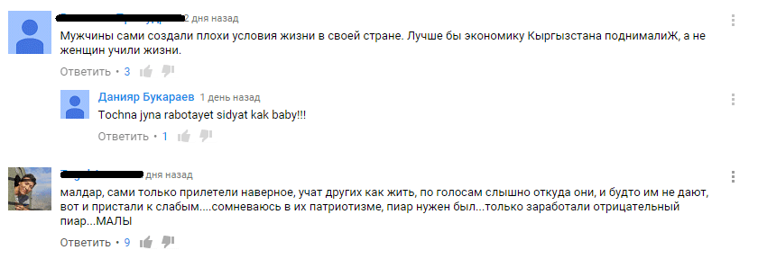 Но, как оказалось, действия «патриотов» одобряют некоторые жители Кыргызстана. Они уверены, если не делать предупреждающие ролики – население «может совсем развратиться».