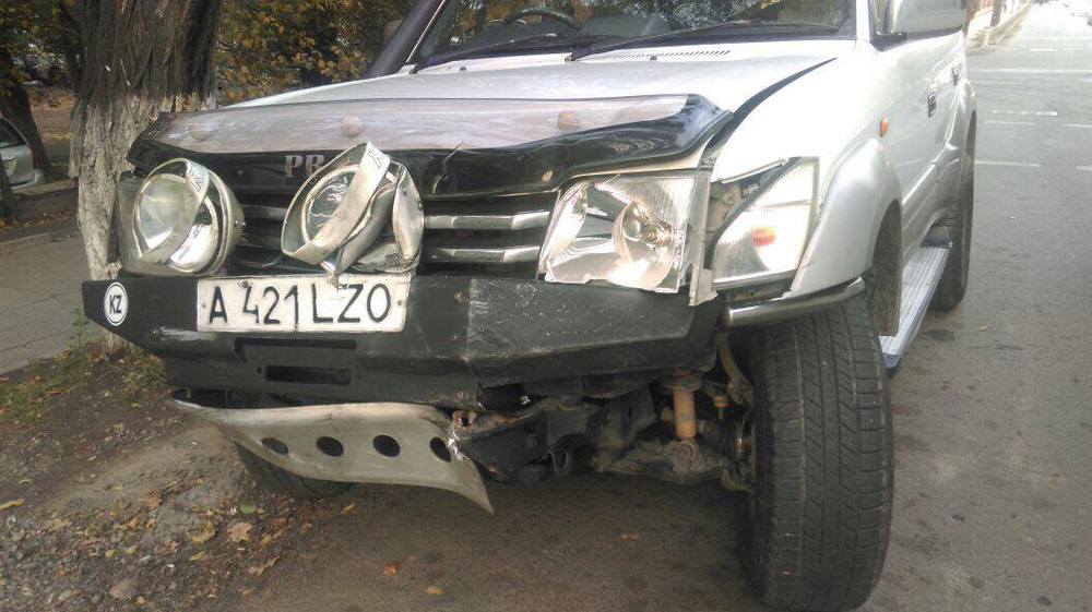 По словам водителей двух авто, оба двигались на зеленый свет светофора. Toyota Land Cruiser Prado передвигался в южном направлении по Шарипова, а по Толе би ехал Mitsubishi. В результате столкновения один из автомобилей перевернулся. К счастью, никто из людей не пострадал. Врачи скорой помощи после осмотра отпустили водителей.