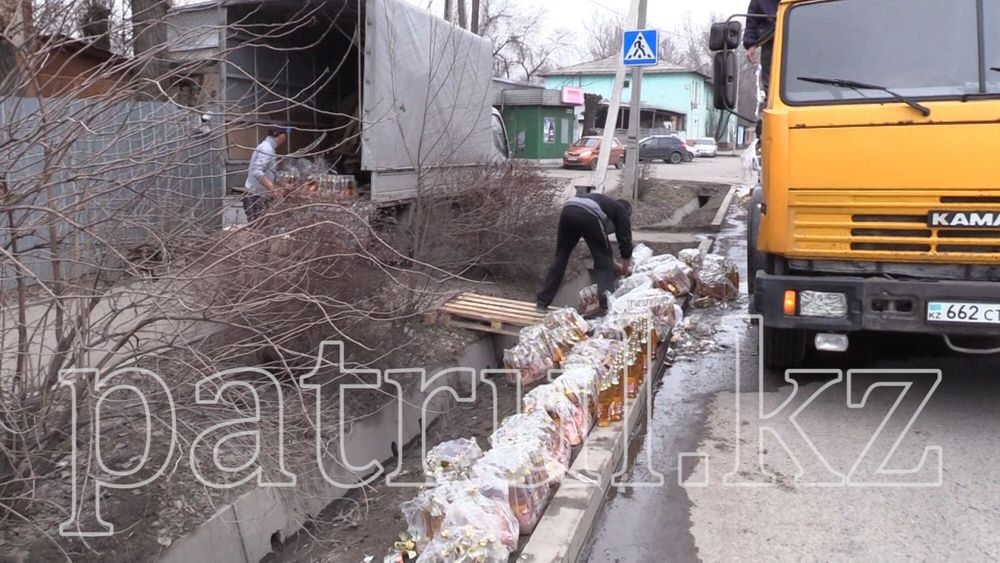 В Алматы из грузовика выпали ящики с пивом, когда водитель резко затормозил, передает Total.kz со ссылкой на Patrul.kz.