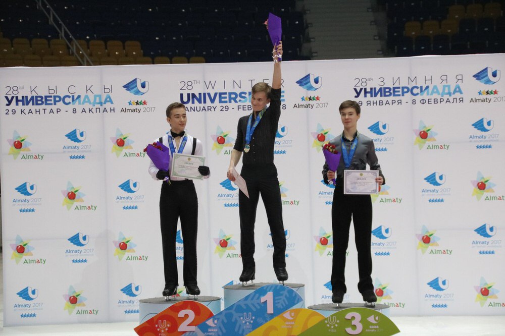 Среди мальчиков победа досталась алматинскому спортсмену Артуру Панихину, который набрал 150,48 очка. За ним расположились Мелис Хакимов из Караганды (132,13) и Никита Манько из Астаны (129,92).