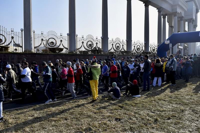 На зимний забег собралось более 500 алматинцев. Среди них были как просто любители бега, так и спортсмены любительских сборных Казахстана по различным видам спорта. Участники были разделены на четыре возрастные группы: с 10 до 14 лет, с 15 до 34, с 35 до 49, от 50 и выше. Но стоит отметить, что в парк пришли и маленькие( от двух лет) любители бега, и почетные «бегуны» солидного возраста( от 70 лет).