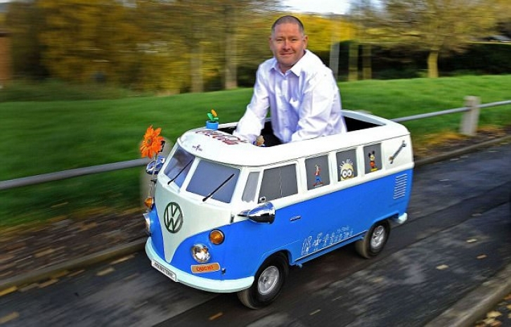 Бердмор рассказал, что построил уменьшенную копию сине-белого микроавтобуса Volkswagen, оснащенного электродвигателем от скутера, для своего 16-летнего сына, увлекающегося автомобилями. На работу над машиной у слесаря ушло семь месяцев и около 1200 фунтов (почти две тысячи долларов). Позже он использовал автомобиль в благотворительных целях, разрешая фотографироваться в нем за благотворительный взнос. В день происшествия Бердмор перевел 40 фунтов, собранных таким образом, в фонд помощи больных раком.