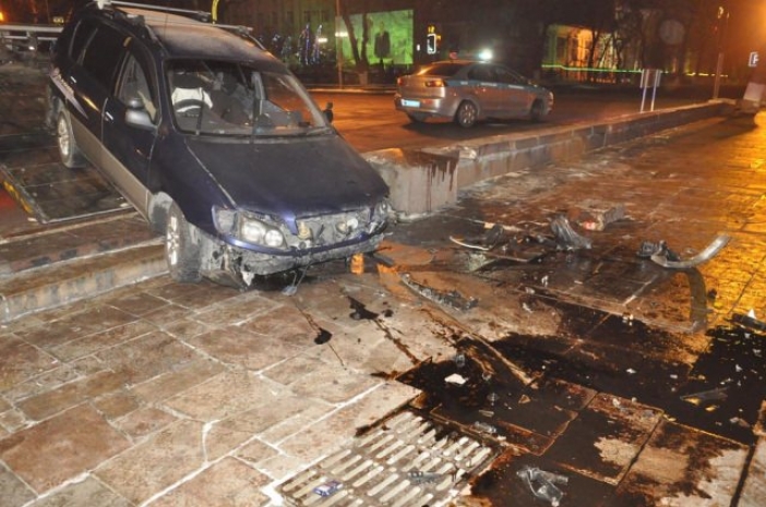 Водитель автомашины Toyota двигался вниз по проспекту Достык, на Т-образном перекрестке не справился с управлением, проехал прямо и вылетел с проезжей части, едва не въехав в монумент.