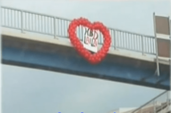 Красное сердце из алых роз с романтической надписью в центре должно было привлечь внимание лишь одной девушки, ежедневно проезжающей по расположенной под мостом главной столичной автомагистрали.