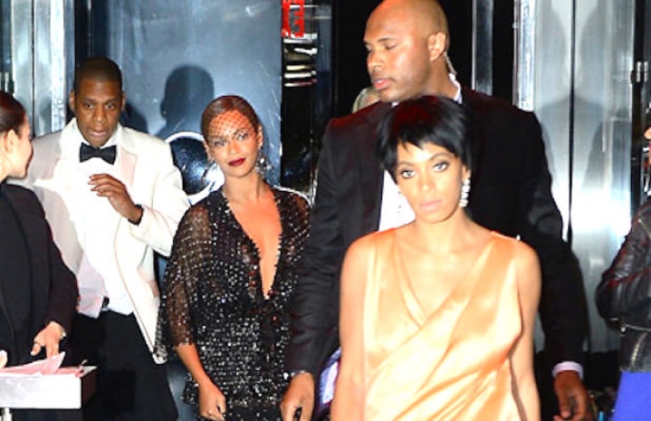 При этом Бейонсе совершенно спокойно и хладнокровно наблюдала развернувшуюся перед ней сцену, позволив охране практически скрутить сестру. Лишь в последний момент, когда Соланж пыталась ногами достать Джея Зи в очередной атаке, Бейонсе решила разнять сестру и мужа, накричав на обоих.
