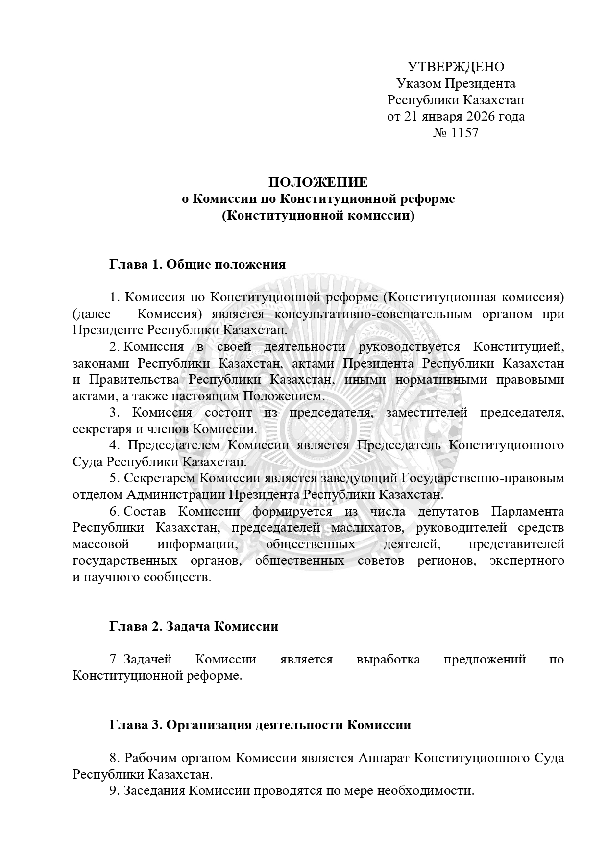 Из положения о Комиссии по Конституционной реформе (Конституционной комиссии) следует, что это консультативно-совещательный орган при президенте РК, задачей которого является выработка предложений по Конституционной реформе. Ее возглавила Эльвира Азимова – председатель Конституционного суда РК.