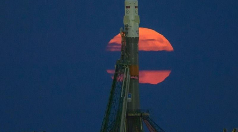 Новая фотография сотрудниками NASA была сделана на космодроме Байконур в Казахстане. Как сообщают ученые, они запечатлели суперлуние, которое наблюдалось в понедельник, 14 ноября, прямо за ракетой «Союз».